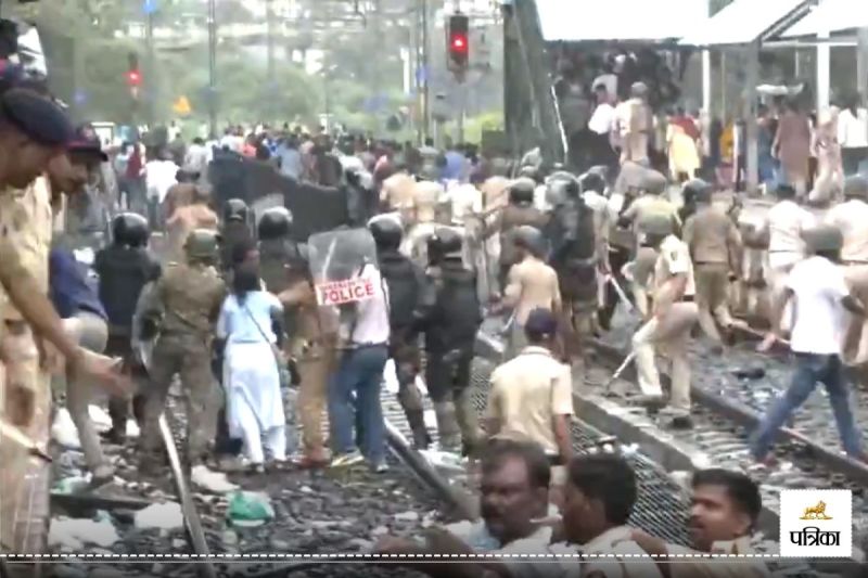 Lathi charge on protesters at Badlapur Station : ठाणे जिले के बदलापुर में नर्सरी में पढ़ने वाली नाबालिग लड़कियों के साथ हुई हैवानियत के बाद पूरे महाराष्ट्र में आक्रोश की लहर फैल गई है। आरोप है कि स्कूल में ही एक 24 वर्षीय सफाई कर्मचारी ने चार साल की दो छात्राओं का यौन उत्पीड़न किया। यह मामला सामने आने के बाद गुस्साए लोगों ने मंगलवार सुबह करीब 10 बजे बदलापुर स्टेशन पर ट्रेन रोक दी। सैकड़ों प्रदर्शनकारी पटरियों पर बैठ गए और 'आरोपियों को फांसी दो' के नारे लगाने लगे। इससे लोकल ट्रेनों के साथ-साथ लंबी दूरी की ट्रेनें भी बाधित हो गईं। सुबह से शाम तक 30 लोकल ट्रेनों को रद्द करना पड़ा और सेट्रल लाइन की सेवाएं लड़खड़ा गईं।