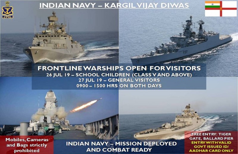विदित हो कि 26 जुलाई दिन शुक्रवार को जहाज विशेष रूप से स्कूली बच्चों और आम मुंबईकरों के लिए खुले रहेंगे, वहीं नौसेना की ओर से आम जनता का स्वागत 27 जुलाई 19 को सुबह 9 बजे से शाम 3 बजे के बीच किया जाएगा।