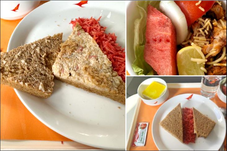 संजीव कपूर ने एअर इंडिया (@airindiain) को टैग करते हुए कहा, नागपुर से मुंबई जाने वाली 0740 फ्लाइट में तरबूज के साथ साथ चिकन टिक्का, तरबूज, खीरा, टमाटर और सेव जैसी चीज़ें परोसी गई। मायो (Mayo) के साथ कटी हुई पत्तागोभी की कम फिलिंग वाली सैंडविच भी दी गई है। उन्होंने ट्विटर पर खाने की तस्वीरें शेयर करते हुए यह भी लिखा, "जाग जाओ एअर इंडिया।" उन्होंने लिखा, "वाकई में क्या भारतीयों को नाश्ते में यही खाना चाहिए?"
