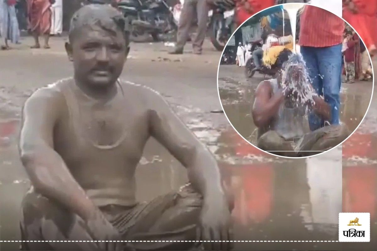 वीडियो में सीपीआई नेता बारिश के बाद शेवगांव की एक सड़क पर जमा हुए पानी में बैठे दिख रहे है। वह कीचड़ भरे पानी को अपने ऊपर डालते है और बाद में उनके समर्थक सरकार विरोधी नारे लगाकर उन्हें दूध से नहलाते है।