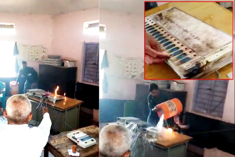 इस घटना का वीडियो सोशल मीडिया पर वायरल हो गया है। बताया जा रहा है कि वह ईवीएम के पास वोट करने गया था, लेकिन उसने ईवीएम मशीन पर पेट्रोल डालकर उसे आग लगा दी।