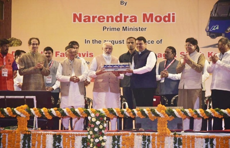 मुंबई। मुंबई में मेट्रो परियोजनाओं को विस्तार देते हुए प्रधानमन्त्री नरेंद्र मोदी ने शनिवार को कुल लगभग 20 हजार करोड़ रुपये के निर्माण परियोजनाओं को हरी झंडी दिखाई। मेट्रो लाइन 10, 11 और 12 के साथ मेट्रो भवन निर्माण को भी झंडी दिखाई। बीकेसी में आयोजित भूमिपूजन कार्यक्रम में उन्होंने कहा कि भावी पीढ़ी को समस्या मुक्त बनाने के लिए केंद्र सरकार आगामी दिनों में 100 लाख करोड़ रुपये आधुनिक इंफ्रास्ट्रक्चर पर खर्च करेगी। मुंबई में इसका खासा लाभ होगा। राज्य में ही कुल 600 किमी मेट्रो लाइन के निर्माण की अनुमति दे दी गई है। मुंबई की जनता अभी 11 किमी का मेट्रो से लाभान्वित है जबकि अगले तीन से चार वर्षों में 325 किमी तक लगभग 70 लाख मुंबई वासियों को लाभान्वित करेगी। कार्यक्रम में राजयपाल भगत सिंह कोश्यारी , शिवसेना अध्यक्ष उद्धव ठाकरे , मुख्यमंत्री देवेंद्र फडणवीस सहित तमाम मंत्री व् पार्टी नेता उपस्थित थे। प्रधानमन्त्री ने मुंबई की जनता के स्पिरिट को भी सलाम किया कहा कि इसरो केवैज्ञानिकों के स्पिरिट ने भी मुझे प्रेरित किया है।