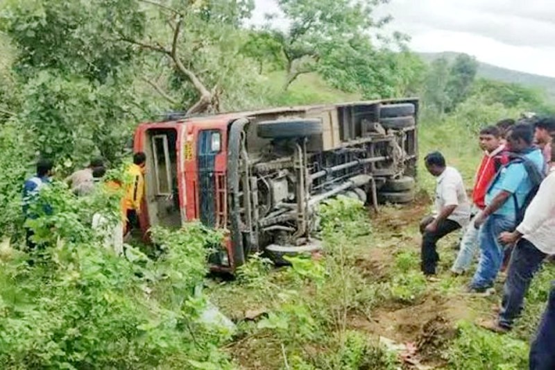 बुलढाणा में यात्रियों से भरी बस घाट में पलटी