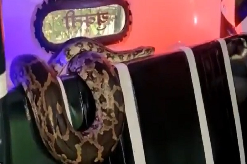 रिक्शा में यात्रियों की सीट पर लिपटा दिखा 5 फीट का अजगर