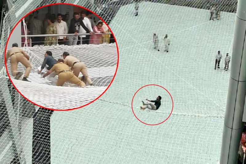 Mantralaya Suicide Attempt Video: मुंबई स्थित मंत्रालय भवन (Man Jumps off from Mantralaya Building) में एक बार फिर चौंकाने वाली घटना हुई है। बुधवार दोपहर में एक व्यक्ति ने मंत्रालय भवन में आत्महत्या का प्रयास किया। हालांकि मंत्रालय में लगे सुरक्षा जाल की वजह से शख्स की जान बच गयी। मुंबई पुलिस ने उस शख्स को हिरासत में ले लिया है और पूछताछ जारी है।