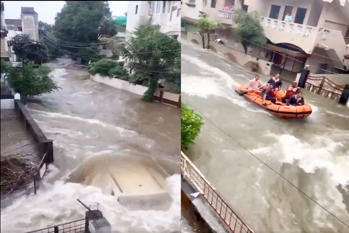 Nagpur Flood: महाराष्ट्र के नागपुर में शुक्रवार आधी रात के बाद हुई मूसलाधार बारिश ने जमकर कहर बरपाया है। कई इलाकों में भारी तबाही हुई है, जिसने स्थानीय नागरिकों को झकझोर कर रख दिया। घर में पानी घुसने से दो महिलाओं की दर्दनाक मौत हो गयी। शुक्रवार को आधी रात के बाद नागपुर में भारी बारिश शुरू हुई और कुछ ही समय में पूरा शहर जलमग्न हो गया। इस बीच, तेज बादलों की गरज से शहर के लोगों की नींद खुल गयी। सड़कें नदियों में तब्दील हो गईं और पानी घरों में घुस गया। दोपहिया और चारपहिया वाहन बह गए। निचले इलाकों की बस्तियों में कई फीट पानी भर गया। हजारों लोग अपने घरों में फंस गए।