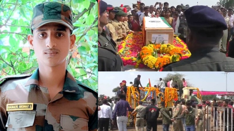 बुलढाणा ज़िले के पिंपलगाव सराय गांव में अग्निवीर गवते अक्षय लक्ष्मण के घर पर सुबह से ही लोगों की भीड़ जुटने लगी। दोपहर में महाराष्ट्र के वीर सपूत की अंतिम यात्रा उनके पैतृक गांव से शुरू हुई। अक्षय गवते की शहादत को सलाम करने के लिए बड़ी संख्या में लोग जुटे। परिवार के साथ-साथ अधिकारियों ने भी पार्थिव शरीर पर पुष्पांजलि अर्पित की। बाद में सैन्य रीति-रिवाज के साथ अक्षय गवते का अंतिम संस्कार किया गया। यह भी पढ़े-Nashik: नम आंखों से दी गई अग्निवीर हर्षल ठाकरे को अंतिम विदाई, हीट स्ट्रोक से गई थी जान