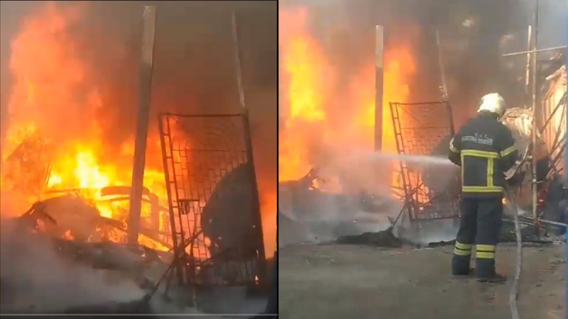 आग लगने के बाद उठी ऊंची लपटें, आसमान में धुएं का गुब्बार-