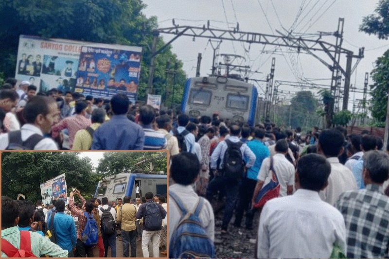 मुंबई में रेल यात्रियों का विरोध प्रदर्शन