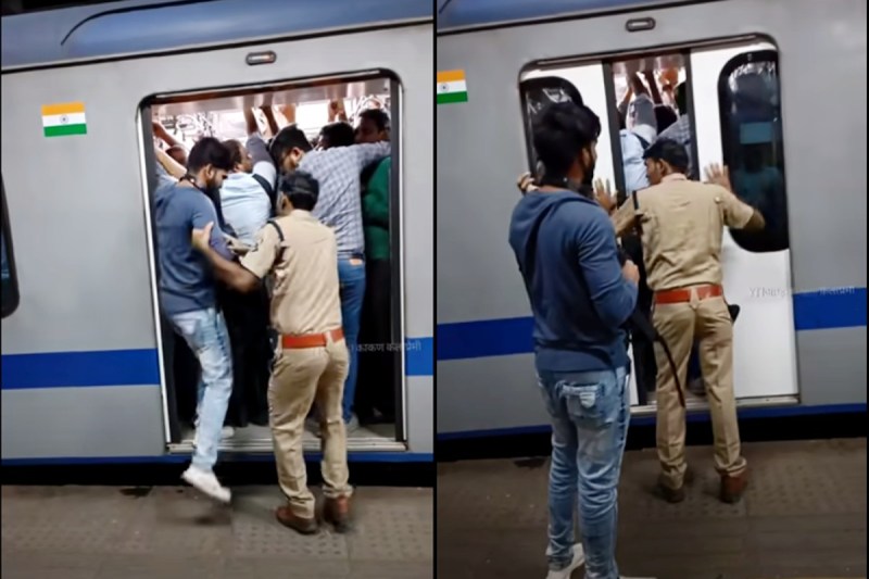 इस वायरल वीडियो क्लिप में मुंबई में एक एसी लोकल ट्रेन पूरी तरह से यात्रियों से भरी हुई दिखाई दे रही है। एक पुलिसकर्मी ट्रेन का दरवाजा बंद करवाने के लिए दौड़ता हुआ दिखाई दे रहा है। इस दौरान वह लोकल ट्रेन के ऑटोमेटिक डोर को बंद होने में बाधा बन रहे कुछ यात्रियों को ट्रेन से नीचे उतारते भी दिख रहा है। वीडियो में एक अन्य पुलिसकर्मी भी नजर आ रहा है, जो ट्रेन के दरवाजों को बंद करवाने की कोशिश कर रहा है।