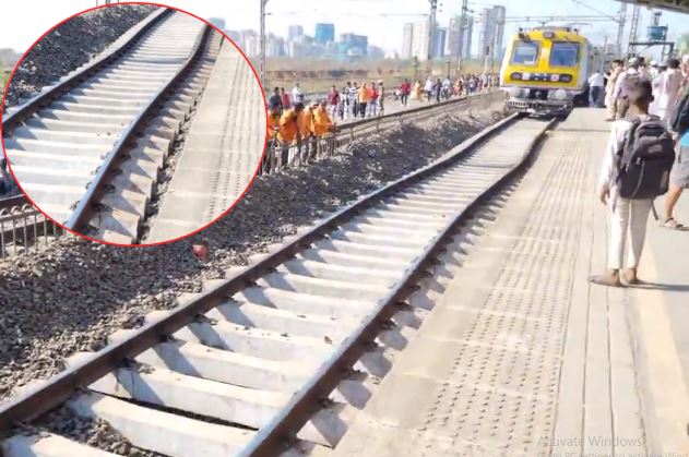 मुंबई के करीब मीरा रोड रेलवे स्टेशन पर हुई घटना का वीडियो सामने आया है। रविवार शाम 4 बजे प्लेटफार्म नंबर 4 पर से एक एक्सप्रेस ट्रेन तेज़ी से गुजारी। तब मुंबई की ओर जाने वाली एक्सप्रेस के डिब्बे सामान्य से ज्यादा हिलते दिखे तो रेलवे कर्मचारियों को संदेह हुआ। जब पास जाकर देखा तो रेल पटरी मुड़ी हुई थी। इसके बाद घटना की सूचना वरिष्ठ अधिकारियों को दी गई। रेलवे पुलिस बल के जवान तुरंत मौके पर पहुंचे।