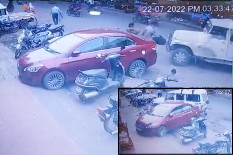 यह घटना आज (22 जुलाई) दोपहर करीब साढ़े तीन बजे की है। सीसीटीवी में दिख रहा है कि कुछ गाड़ियां सड़क के किनारे पार्किंग में खड़ी हैं। जबकि इस दौरान राहगीर भी नजर आ रहे है। एक महिला और एक पुरुष भी सड़क पर चल रहे थे कि तभी एक तेज रफ्तार बोलेरो ने आकर उन्हें जोरदार टक्कर मार दी। हालांकि दोनों की किस्मत अच्छी थी कि उनकी जान बचा गयी। हालांकि इस हादसे में वह घायल हो गए।