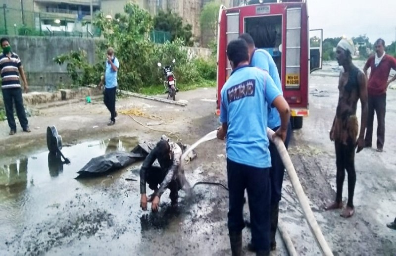 दल-दल होने के कारण वह धंसता जा रहा था। लोगों ने देखा और वहां अफरा-तफरी मच गई। फौरन फायर ब्रिगेड को सूचना दी गई। "डी"वार्ड के फायरकर्मी संजय सरोदे, विजय पाटील और सुरेश गायकर मौके पर पहुचे और संजय सोनवने नामक युवक को सुरक्षित बाहर निकाला। फायरकर्मियों ने कहा कि समय रहते सूचना मिल गई वरना देर होने पर कुछ भी हो सकता था?