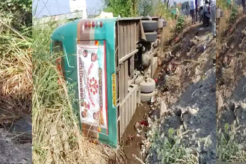 अष्टविनायक जा रही बस पलटी, 5 लोग जख्मी