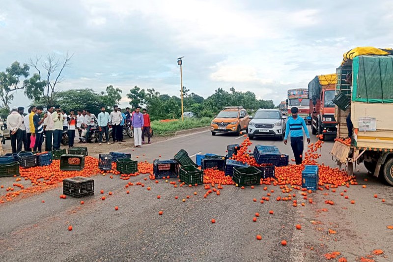 मोहोल तालुका के शेटफल के किसान हनुमंत जाधव अपनी टमाटर की उपज बेचने के लिए मंडी पहुंचे थे। जब व्यापारियों ने हनुमंत के टमाटर की बोली महज 40 पैसे प्रति किलोग्राम की दर से लगाई तो वह हक्के-बक्के रह गए। हनुमंत जाधव लगभग पांच टन टमाटर बेचने के लिए मंडी आये थे। जबकि टमाटर तोड़ने, उसे बाजार तक लाने और मजदूरी का खर्च करीब 1.5 रुपये प्रति किलो है। इसके अलावा टमाटर की खेती में लगने वाली लागत अलग है।