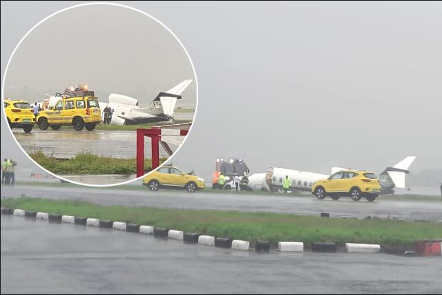 यह घटना गुरुवार शाम करीब 5:08 बजे हुई। हादसे के समय भारी बारिश हो रही थी और एयरपोर्ट पर 700 मीटर की दृश्यता थी। माना जा रहा है कि कम दृश्यता होने की वजह से विमान जैसे ही रनवे-27 पर उतरा फिसल गया। चार्टर्ड विमान में 6 यात्री और 2 क्रू मेंबर सवार थे। जिसमें से तीन लोग घायल हुए है। हालाँकि विमान बुरी तरह क्षतिग्रस्त हुआ है। फ़िलहाल जांच के बाद ही पता चल पाएगा कि रनवे को कितना नुकसान हुआ है।
