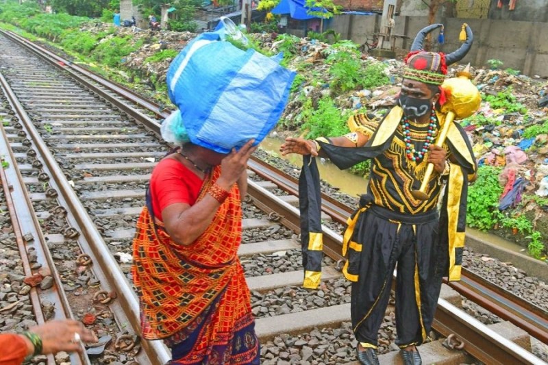 मुंबई. पौराणिक कथाओं के अनुसार यमराज मृत्यु के देवता हैं। यम दूत लोगों के प्राण हरने आते हैं। वही यमराज आजकल मुंबई में रेलवे ट्रैक पर लोगों की जान बचाने की जद्दोजहद में जुटे हैं। लोगों को समझा रहे कि जान जोखिम में डाल रेलवे ट्रैक न पार करें। हकीकत में यह न यमदूत हैं न यमराज। यमराज की वेशभूषा में ये रेलवे या आरपीएफ के कर्मचारी हैं। हार्बर रूट पर गुरुवार को एक महिला रेलवे ट्रैक पार कर रही थी। उसे समझाते हुए ड्यूटी पर तैनात कर्मचारी।