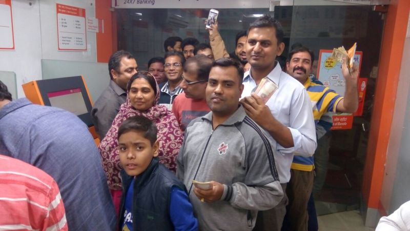 काेर्ट राेड स्थित एक प्राइवेंट बैंक की क्याेस्क मशीन के सामने लगी लंबी लाइन में खड़े हाेकर अपनी बारी का इंतजार कर रहे डॉक्टर मयंक गुप्ता, रवि कुमार, मनीष त्यागी, नितिश कपूर, संजीव सिन्हा आैर हिमांशु ने बताया कि उन्हेंं जैसे ही खबर मिली कि रात से 500 आैर एक हजार के नाेट बंद हाे रहे हैं ताे वह अपने नाेट लेकर बैंक में जमा कराने आए हैं। इन्हाेंने यह भी बताया कि क्याेस्क मशीन भी केवल 20 हजार रुपये तक ही कैश ले रही है।