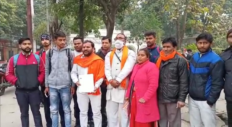 प्रदर्शन करते हिंदू संगठनाें के पदाधिकारी