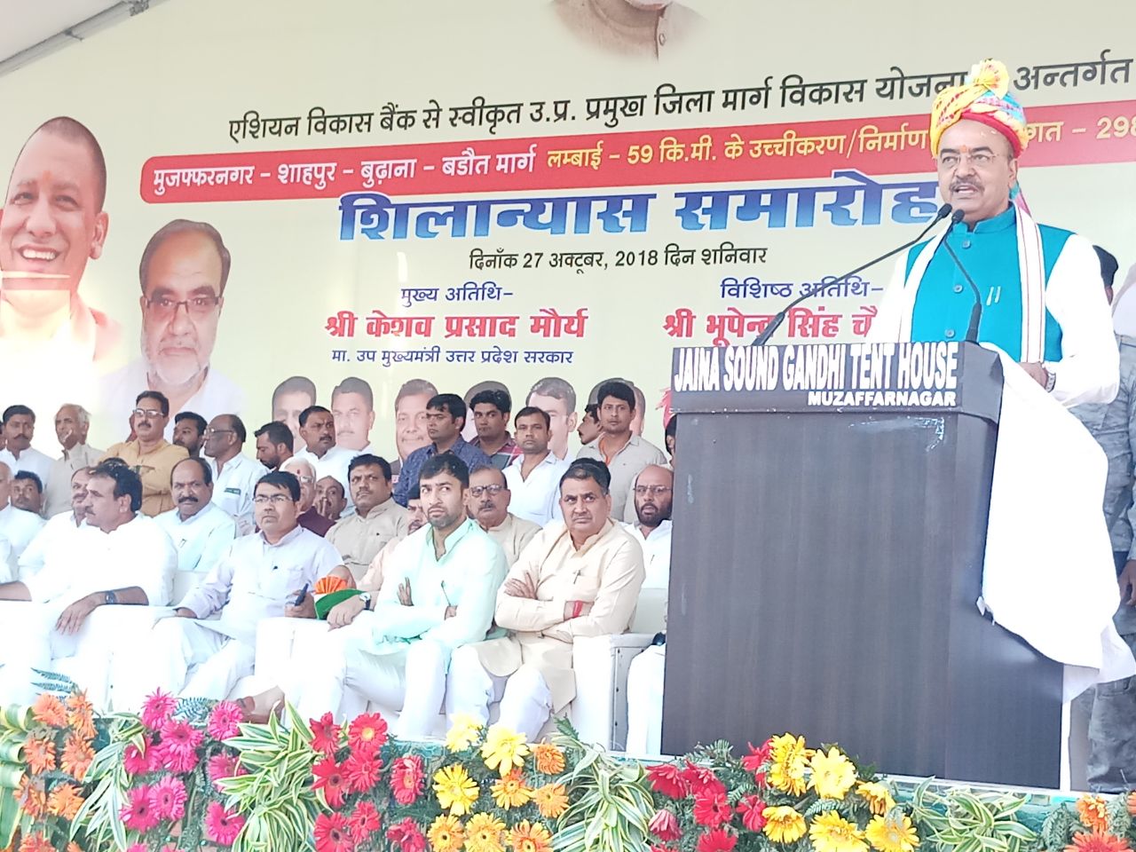 मुजफ्फरनगर। उत्तर प्रदेश के उपमुख्यमंत्री केशव प्रसाद मौर्य शनिवार दोपहर एक बजे मुजफ्फरनगर पहुंचे। मौर्य यहां चरथावल कस्बा स्थित तपोवन आश्रम में क्षेत्रीय वैदिक सम्मेलन में हिस्सा लेंगे। इसके बाद उनका दूसरा कार्यक्रम शाहपुर में होगा। शाहपुर में डिप्टी सीएम केशव प्रसाद मौर्य 600 करोड़ की योजनाओं का शिलान्यास किया इसमें मुजफ्फरनगर-बुढ़ाना-बड़ौत राजमार्ग का निर्माण भी शामिल है। यह कार्यक्रम कस्बा शाहपुर के पैंठ मैदान में आयोजित किया गया। इससे पहले केशव प्रसाद मौर्य का हेलीकॉप्टर निर्धारित हेलीपैड पर उतरा उसके बाद उन्हें गार्ड ऑफ ऑनर दिया गया।
