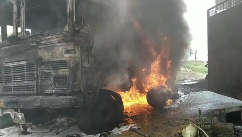 मुजफ्फरनगर। जनपद में थाना नई मंडी क्षेत्र के एक रिहायसी कालोनी में उस वक्त अफरा-तफरी मच गई जब एक नमकीन और काले तेल के गोदाम के बाहर खड़े टैंकर में अचानक आग लग गयी। देखते ही देखते आग ने विकराल रूप धारण कर लिया और टैंकर धूं धूं कर जलने लगा मामले की जानकारी दमकल विभाग को दी गई।