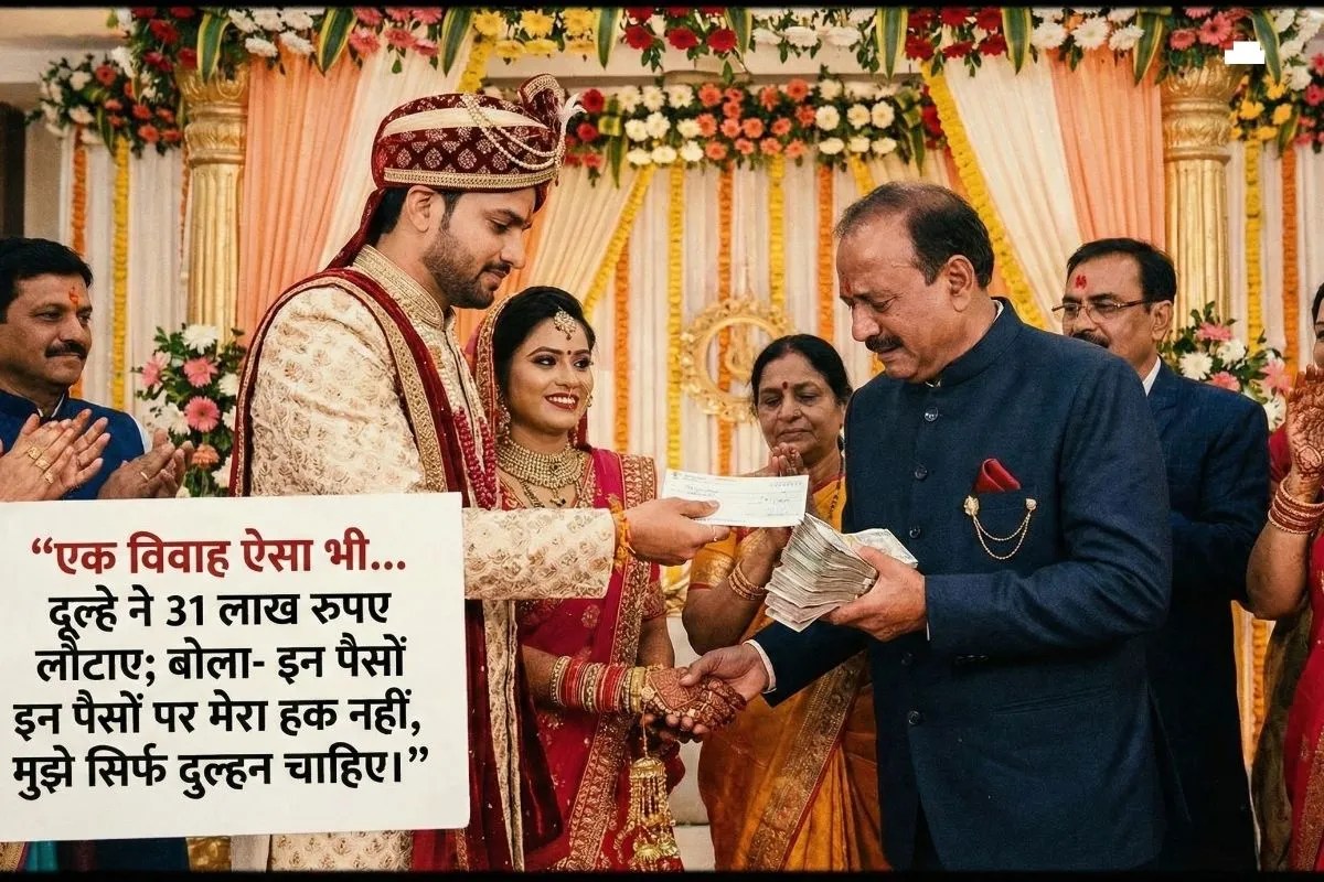 सुखपाल सिंह ने बताया कि दूल्हे अवधेश का परिवार व्यवसाय करता है। बुधवार रात को शादी के दौरान लड़की के घर वालों ने भेंट के तौर पर दूल्हे अवधेश की तरफ 31 लाख रुपए की नोटों से भरी थाल बढ़ाई। अचानक दूल्हे अवधेश ने थाल लेने से मना कर दिया और कहा यह मुझे नहीं चाहिए। इन पर मेरा अधिकार नहीं। यह अदिति के पिता की गाढ़ी कमाई है। इसे मैं स्वीकार नहीं कर सकता है। मुझे सिर्फ दुल्हन चाहिए।