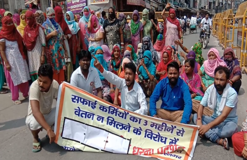 मुजफ्फरनगर. नगरपालिका परिषद के साथ अनुबंध के आधीन काम करने वाली प्राइवेट कम्पनी से तीन माह का वेतन न मिलने की वजह से सैंकड़ो सफाई कर्मचारी सड़कों पर आ गए है। शनिवार को कर्मचारियों ने शिवचौक पर धरना दिया। जिनमे महिला सफाईकर्मी भी शामिल रही। जाम की जानकारी मिलते ही एडीएम प्रशासन भारी पुलिस फोर्स के साथ मौके पर पहुंचे। सफाई कर्मचारियों का कहना है कि 43 लाख रुपये वेतन लेकर कंपनी लापता हो चुकी है। सफाई कर्मचारियों का कहना है कि गुडगांव की एक कंपनी को कंस्ट्रक्शन को ठेका दिया गया है। कंपनी की तरफ से शहर की साफ-सफाई कार्य के लिए करीब 300 महिला पुरुष सफाई कर्मचारियों को नौकरी पर रखा हुआ है। इन कर्मचारियों ने लगभग तीन माह तक कार्य किया। कर्मचारियों का कहना है कि कंपनी की तरफ से घरों व व्यावसायिक प्रतिष्ठानों से शुल्क वसूल लिया है। उसके बाद कंपनी अपना कामकाज समेटकर भाग गयी है। लेकिन किसी भी कर्मचारी को कंपनी की तरफ से वेतन नहीं दिया गया।
