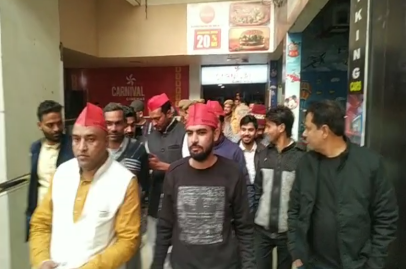 कार्यकर्ताओं के साथ फिल्म देखने पहुंचा था सपा नेता