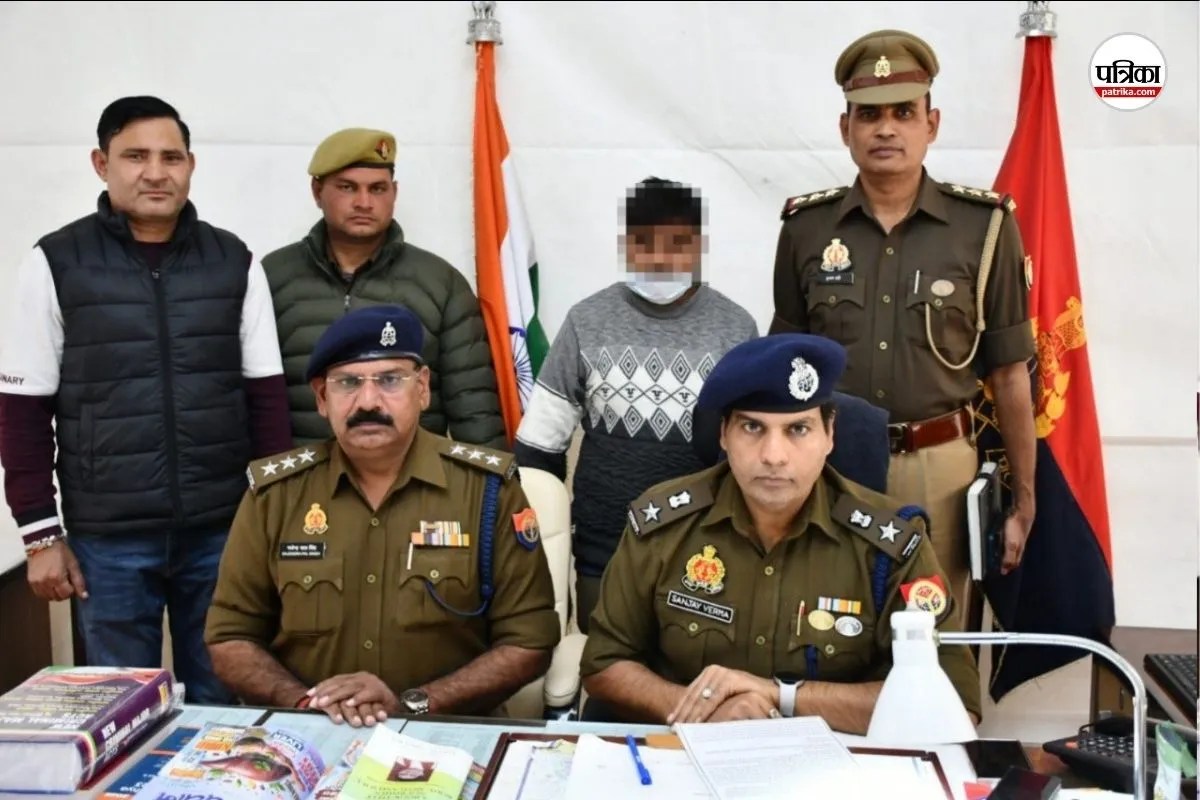 पकड़ा गया आरोपी पीछे और पूरे मामले की जानकारी देते वरिष्ठ पुलिस अधीक्षक मुजफ्फरनगर