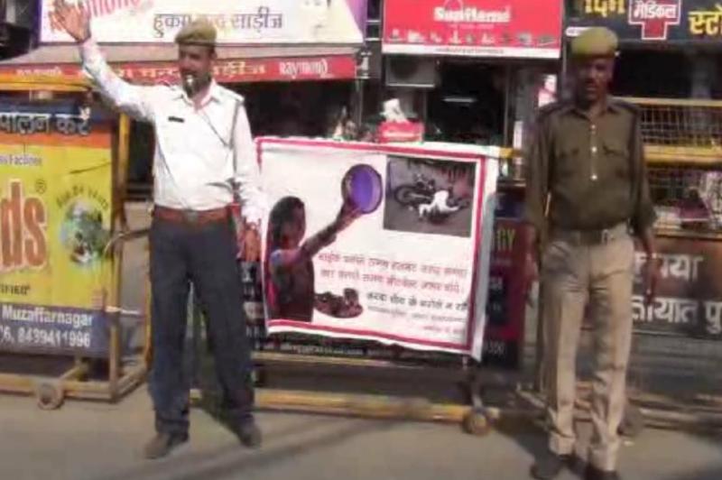 दरअसल लगातार हो रही सड़क दुर्घटनाओं और उनमें हेलमेंट के ना होने की वजह से हर वर्ष सैकड़ों लोगों की जान चली जाती है।इस पर लगाम लगाने के लिए मुजफ्फरनगर की यातायात पुलिस ने अनोखी पहल करते हुए।लोगों में हेलमेट के प्रति जागरूक लाने के लिए यातायात पुलिस ने करवाचौथ के त्योहार का सहारा लिया है।जिसमें पुलिस ने बोर्ड आैर पोस्टर लगवाकर एक एेसा स्लाेगन लिखा है।जिसकी चर्चा शुरू हो गर्इ।शहर भर में काफ़ी मात्रा में जिले में आस पास के क्षेत्रों में लगाये गये।इन पोस्टरों में लिखा हुआ है कि इस करवाचौथ अपने पति को हेलमेट पहनाएं, पति की लंबी उम्र पाएं।