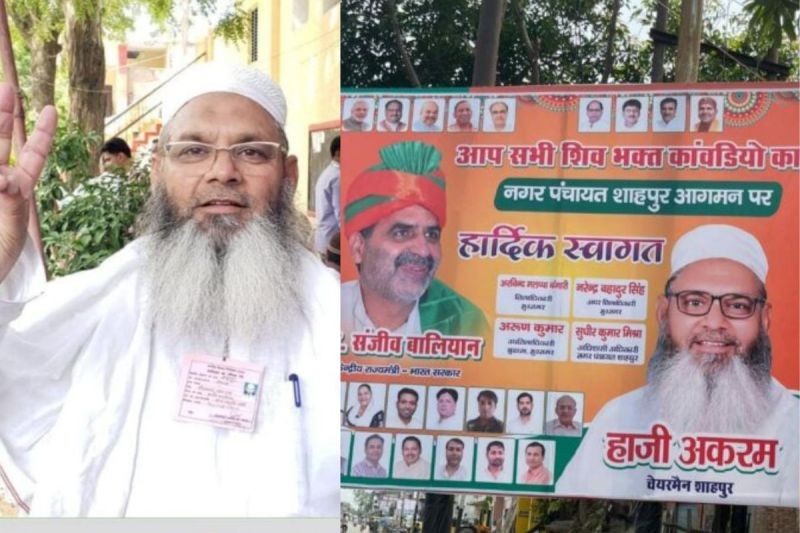 UP Politics: उत्तर प्रदेश में हुए निकाय चुनाव में हाजी अकरम कुरैशी कल्लू ने मुजफ्फरनगर में आम आदमी पार्टी का खाता खोला था। हाजी अकरम आम आदमी पार्टी के प्रत्याशी के तौर पर शाहपुर से चेयरमैन बने थे। उनको जीत के बाद संजय सिंह ने बधाई भी दी थी। अकरम अब आप के बजाय केंद्रीय मंत्री और मुजफ्फरनगर के MP संजीव बालियान के पाले में दिख रहे हैं। हाजी अकरम से शाहपुर में कई होर्डिंग्स लगे हैं, जो पूरी तरह से भाजपाई रंग में रंगे हैं। इनमें अकरम से बड़ा संजीव बालियान की तस्वीर है। वहीं होर्डिंग में ऊपर नरेंद्र मोदी से लेकर अमित शाह तक बीजेपी के सभी बड़े नेता मौजूद हैं।