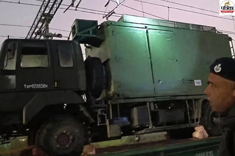 मालगाड़ी पर लदा ट्रक बिजली के तार से टकराया। फोटो-AI जनरेटेड