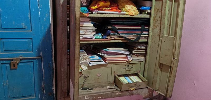 चोरी के बाद बिखरा पड़ा सामान।