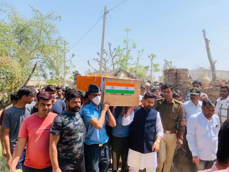 बता दें कि जवान का उनके घर से 1 किलोमीटर दूर निजी खेत मे अंतिम संस्कार किया गया. जहां हजारों की संख्या में उमड़े लोग भारत माता की जय ओर महेश बुगालिया अमर रहे के जयकारे लगा रहे थे । जयपुर आई एयरफोर्स की 20 जवानों की टुकड़ी ने 30 फायर कर सम्मान देकर अंतिम विदाई दी । इस मौके पर परबतसर विधायक रामनिवास गावडिया, उपखण्ड अधिकारी शिवपाल जाट, परबतसर थानाधिकारी रुपाराम चौधरी उपस्थित रहे ।
