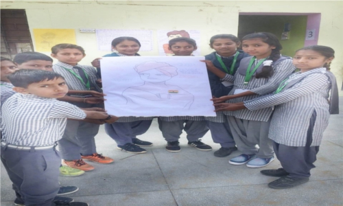 डीडवाना. विवेकानन्द जयंती के मौके एलबीएन स्कूल में स्वामी विवेकानन्द का रेखाचित्र प्रस्तुत करते विद्यार्थी।