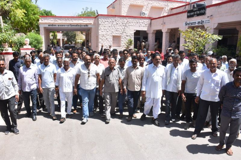 नागौर. ग्रामीणों के साथ कलक्ट्रेट पहुंचे माली समाज अध्यक्ष ।