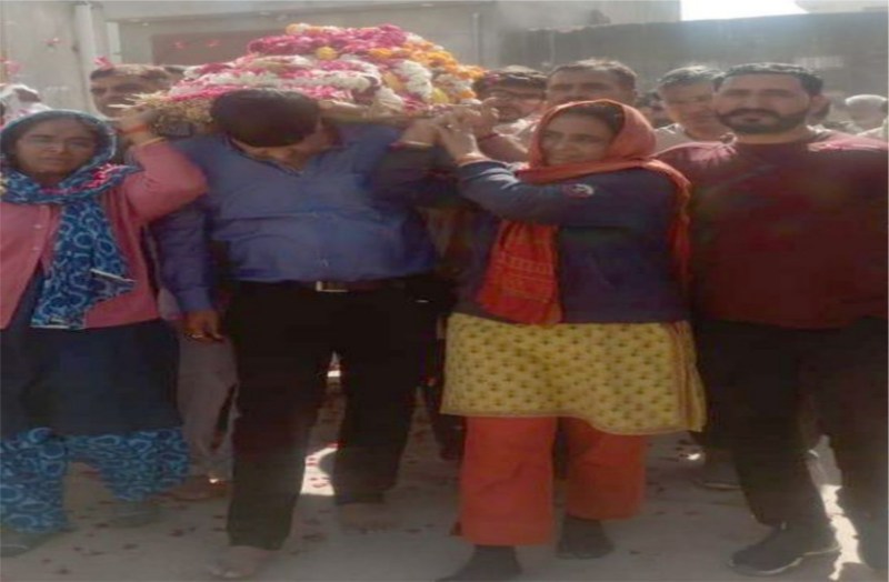 मेड़ता सिटी. पूर्व केन्द्रीय मंत्री एवं नागौर सांसद रहे सीआर चौधरी की धर्मपत्नी माला चौधरी के निधन पर शुक्रवार को उनके पैतृक गांव धांधलास उदा स्थित शांति वन मुक्तिधाम में अंतिम संस्कार हुआ। पूर्व केन्द्रीय मंत्री की पत्नी की अर्थी को उनकी दो पुत्रियों ने कंधा देकर पुत्र का फर्ज निभाया। उनकी बेटी सरोज चौधरी तथा एएसपी शिल्पा चौधरी कंधा व चिता को मुखाग्नि दिए जाने की रस्म अदा कर पुत्र का फर्ज निभाया।