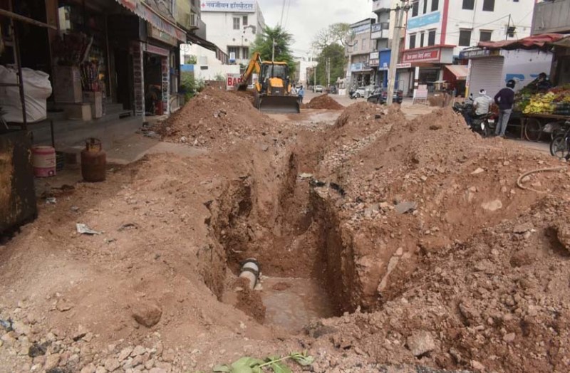 सुगनसिंह सर्किल के पास पाइप लाइन में लीकेज होने से खुदाई चल रही है। सड़कों की मरम्मत करवा दी जाएगी।