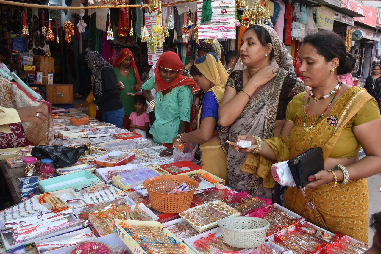 रक्षाबंधन के एक दिन पहले शहर के प्रमुख बाजार पूरी तरह से रक्षाबंधन के रंग में नजर आए। नया दरवाजा, सुगन सिंह सर्किल, माही दरवाजा, गांधी चौक, दिल्ली दरवाजा, विजयबल्लभ चौराहा एवं मानासर चौराहा आदि क्षेत्रों में दुकानों पर राखियां सजी नजर आई। पूजन सामग्री की दुकानों पर भी भीड़ रही। इसके साथ ही शहर के ब्यूटीपार्लरों में रक्षाबंधन को लेकर महिलाएं खुद को संवारने में लगी नजर आई।