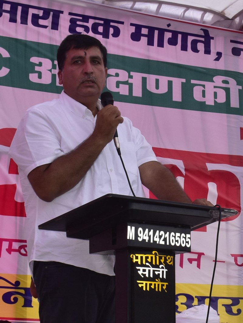 आईबी के पूर्व पुलिस महानिरीक्षक के.राम बागडिय़ा ने कहा कि हमारे देश में दो ही वर्ग है - एक काबिज वर्ग और दूसरा वंचित वर्ग। राजनीति हो या न्यायालय, उद्योग धंधे हो या फिर सरकार, सब जगह काबिज वर्ग का ही राज है। लेकिन युवा शक्ति में बहुत ताकत है, इसके लिए सबको एक होना पड़ेगा। प्रजातंत्र में हाका करना पड़ेगा, राज झुकता है, लेकिन ताकत दिखानी होगी। उन्होंने कहा कि देश धर्म और जाति में बंट रहा है। मेघवाल समाज के नेता शिवदान मेघवाल ने कहा कि आरक्षण को समझना पड़ेगा। यह भी तय करना पड़ेगा कि अपनी लड़ाई किससे है। उन्होंने इस लड़ाई में सभी आरक्षित वर्गों को साथ लेने की बात कही। मेघवाल ने कहा कि ओबीसी को प्रमोशन में भी आरक्षण मिलना चाहिए।