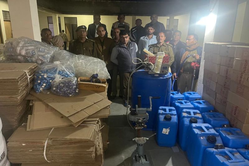काफी मात्रा में स्प्रिट व कथकढ़ शराब के साथ नकली लेबल जब्त