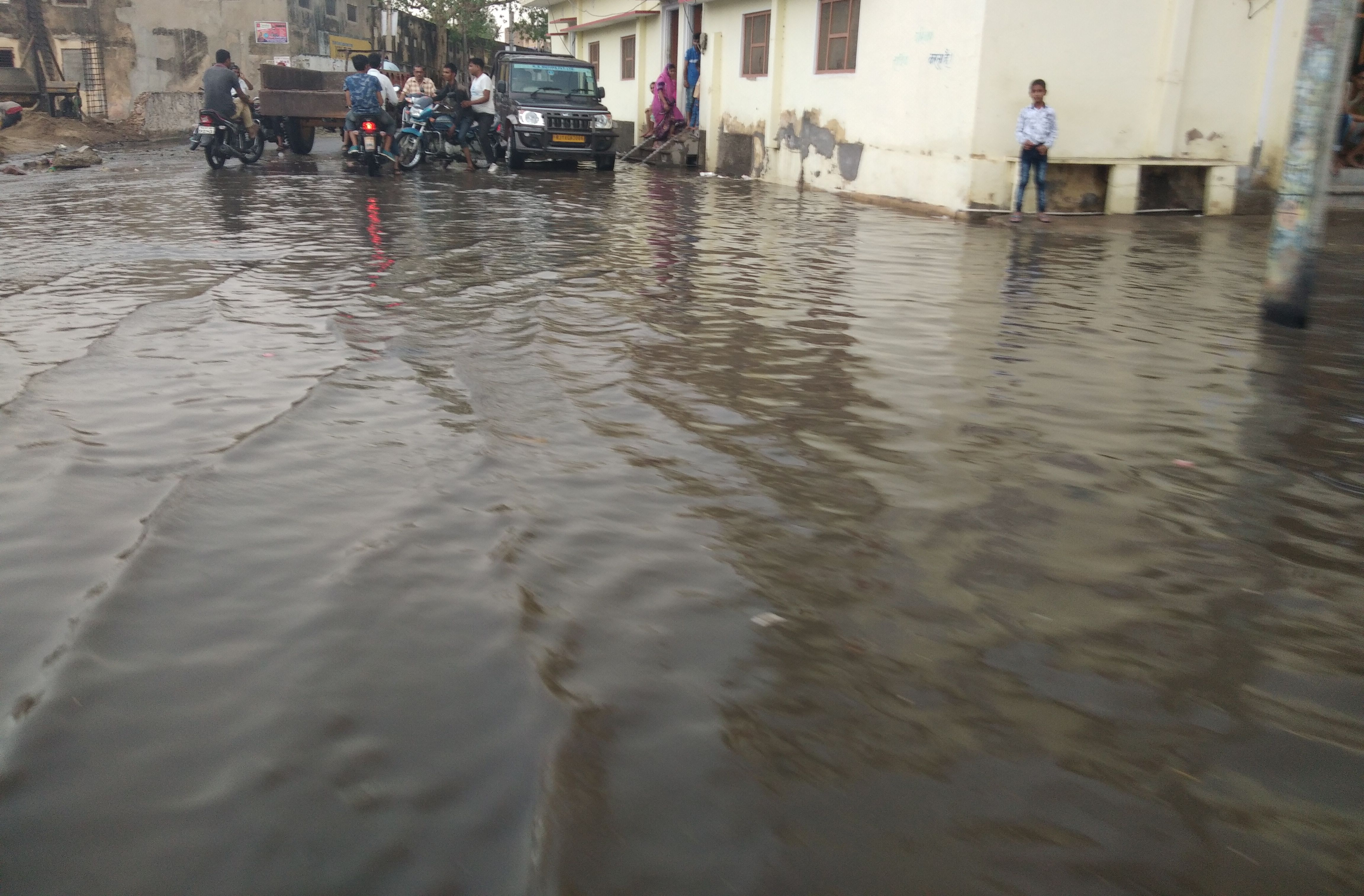 बासनी. मंगलवार की शाम को हुई बारिश होने से ग्रामीणों को गर्मी से राहत मिली है। अपराह्न 4 बजे शुरू हुई बारिश आधे घंटे तक हुई। बारिश के दौरान बासनी की गलियों में पानी भर गया। बारिश में बच्चों ने भीगकर आनंद उठाया। कई दिन से गर्मी की मार झेल रहे बासनी के लोगों को बारिश ने गर्मी से राहत दिलाई है। ठण्डी हवा ने मौसम खुशगवार कर दिया।