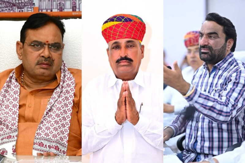 मुख्यमंत्री भजनलाल शर्मा, विधायक रेवंतराम डांगा और हनुमान बेनीवाल