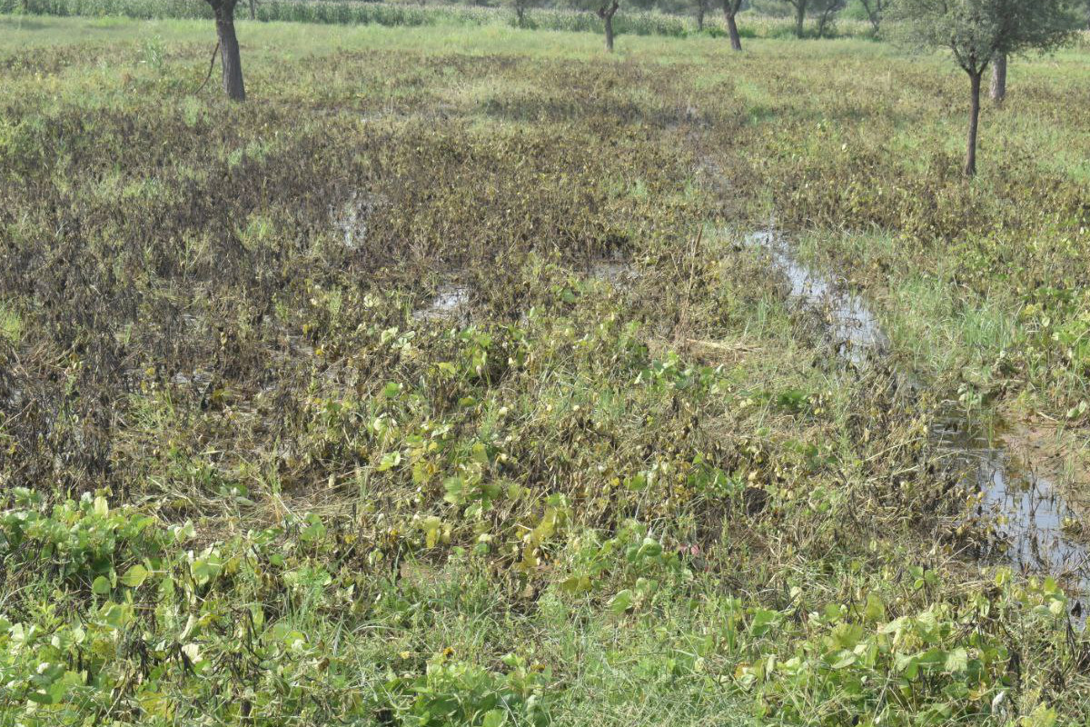 नागौर शहर के निकट सलेऊ गांव के खेत में पानी भरने से खराब हुई मूंग की फसल। फोटो- पत्रिका