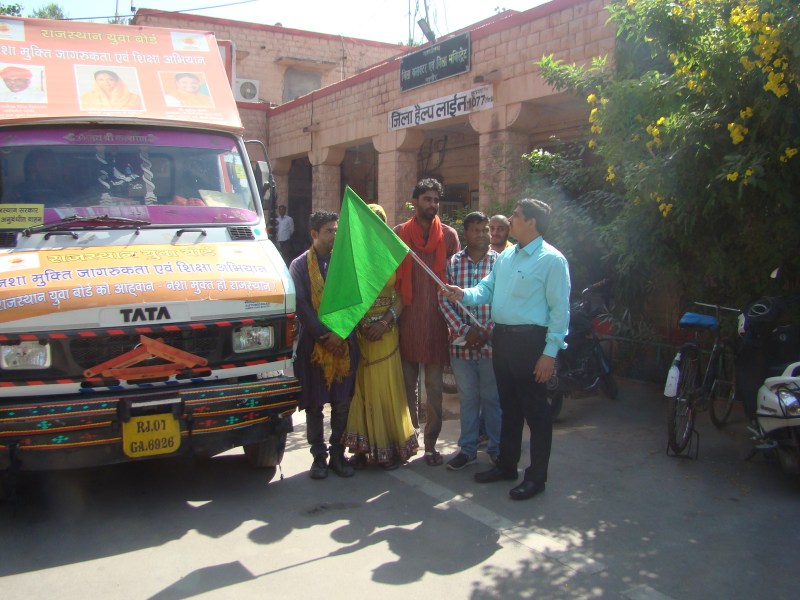 नागौर. राजस्थान युवा बोर्ड की ओर से आयोजित नशा मुक्ति जागरुकता एवं शिक्षा अभियान के तहत बुधवार को नशा मुक्ति रथ नागौर पहुंचा। Nagaur जिला कलक्टर कुमारपाल गौतम ने कलक्ट्रेट परिसर से रथ को हरी झंडी दिखाकर रवाना किया। रथ के माध्यम से नशे के दुष्प्रभाव तथा नशेड़ी के परिजनों पर पडऩे वाले बुरे प्रभावों के बारे में जागरुक किया जाएगा। रथ के माध्यम से जिले के विभिन्न क्षेत्रों में नुक्कड़ नाटक की प्रस्तुतियां दी जाएगी। इस अवसर पर अतिरिक्त जिला कलक्टर छगनलाल गोयल सहित अधिकारी व आमजन उपस्थिति थे।