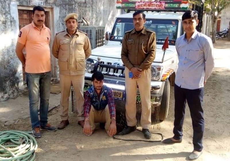 जानकारी के अनुसार थांवला थाने की टीम को मुखबिर से सूचना मिली कि एक पिकअप वाहन में तीन-चार संदिग्ध व्यक्ति जा रहे हैं। सूचना पर पुलिस टीम द्वारा नाकाबंदी शुरू की गई। नाकाबंदी के दौरान ग्राम टेहला की तरफ से तेज गति से एक पिकअप आती दिखाई दी, जिसको रूकने का इशारा करने पर वाहन चालक पुलिस नाकाबंदी तोडकऱ भागने लगा, जिस पर कुछ दूरी पर बैठे पुलिस जवान ने स्टॉप स्टीक की मदद से वाहन को पंक्चर कर दिया। पुलिस टीम द्वारा वाहन का पीछा करने पर वाहन चालक एवं वाहन में बैठे अन्य व्यक्ति मौके से भागने लगे, जिनका पुलिस द्वारा पीछा कर गोरजी का पुरा निवासी राजूराम (20) पुत्र गिरधारी गुर्जर को दस्तयाब कर वाहन की तलाशी लेने पर वाहन में घी, तेल, गुड़ आदि सामान भरा हुआ मिला। पुलिस ने पिकअप वाहन जब्त कर ली।