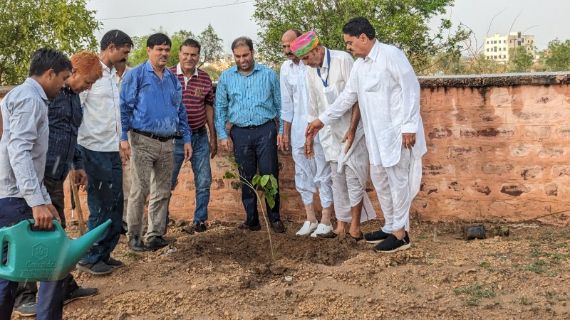 Nagaur. District Collector Piyush Samaria and others planting saplings at the animal exhibition site