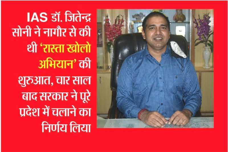 गौरतलब है कि नागौर के तत्कालीन जिला कलक्टर डॉ. जितेन्द्र कुमार सोनी ने वर्ष 2021 में रास्ता खोलो अभियान की शुरुआत करते हुए गांवों में वर्षों से बंद पड़े रास्तों को न केवल खुलवाया, बल्कि उन पर नरेगा के तहत ग्रेवल सडक़ें भी बनवाई, जिसके चलते जिले के हजारों किसानों एवं ग्रामीणों को बड़ी राहत मिली। अभियान को सफल बनाने के लिए विभिन्न निर्देश जारी किए गए हैं, जिनमें ‘रास्ता खोलो अभियान’ के लिए जिला एक नोडल अधिकारी व एक सहायक स्तर पर नोडल अधिकारी नियुक्त किया जाएगा।