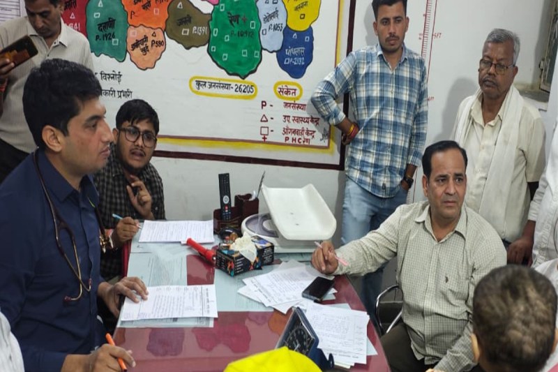 बच्चों के मेडिकल परीक्षण के दौरान समिति अध्यक्ष और चिकित्सक। फोटो- पत्रिका
