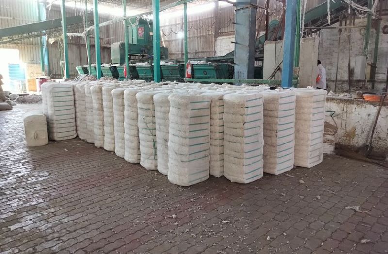 कुचेरा. कपड़ा उद्योग में भेजने के लिए फैक्ट्री में तैयार कोटन।